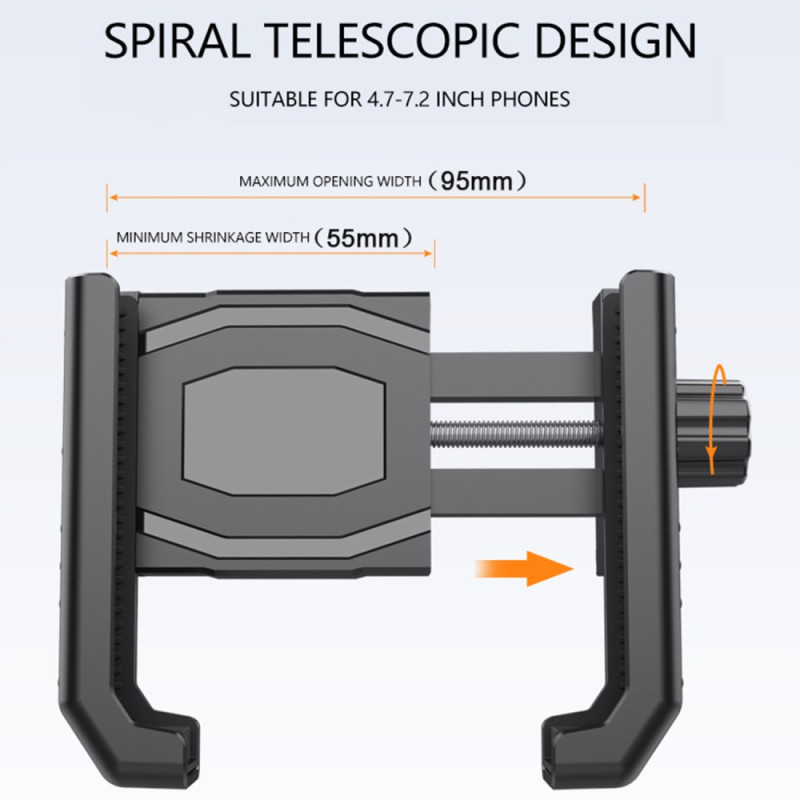 La fixation mécanique directement sur la potence garantit une sécurité optimale et un positionnement stable de votre dispositif de navigation. Ce support QX-24, en alliage d'aluminium et ABS, utilise un bouton de verrouillage rotatif pour fixer fermement les téléphones de 55mm à 95mm de largeur. La tête pivotante permet une rotation de 360 degrés pour un angle de vue parfait. Des patins en silicone sont intégrés pour protéger votre téléphone des rayures et absorber les vibrations. De plus, la conception préserve l'accès total à la caméra arrière, permettant l'enregistrement vidéo en roulant.