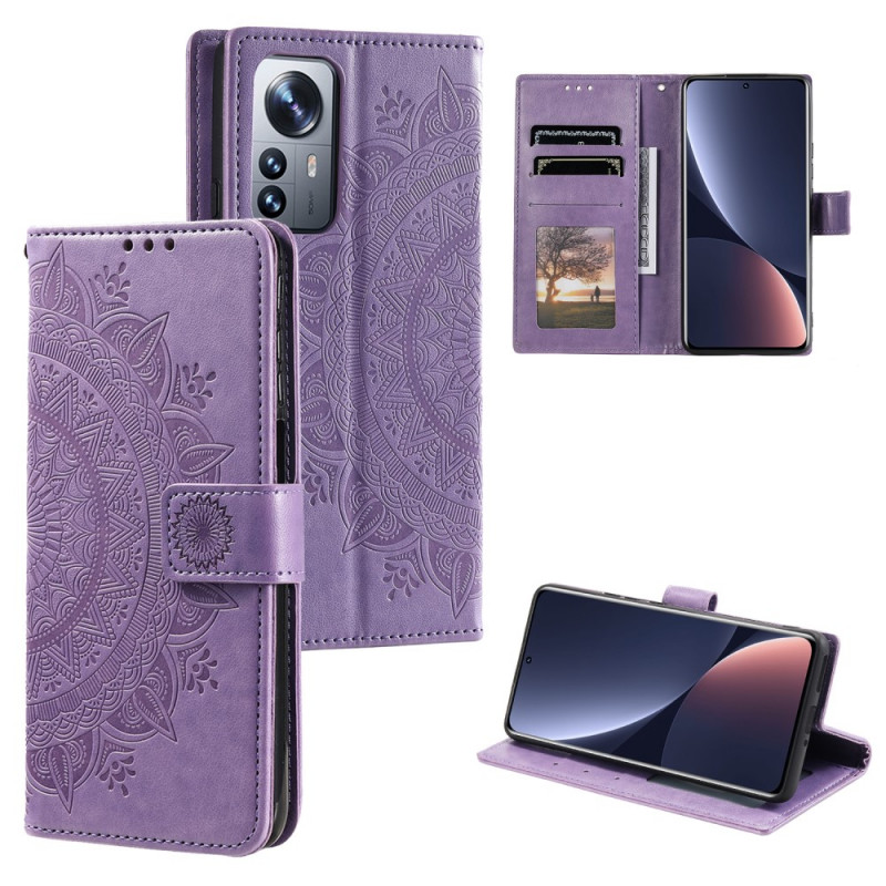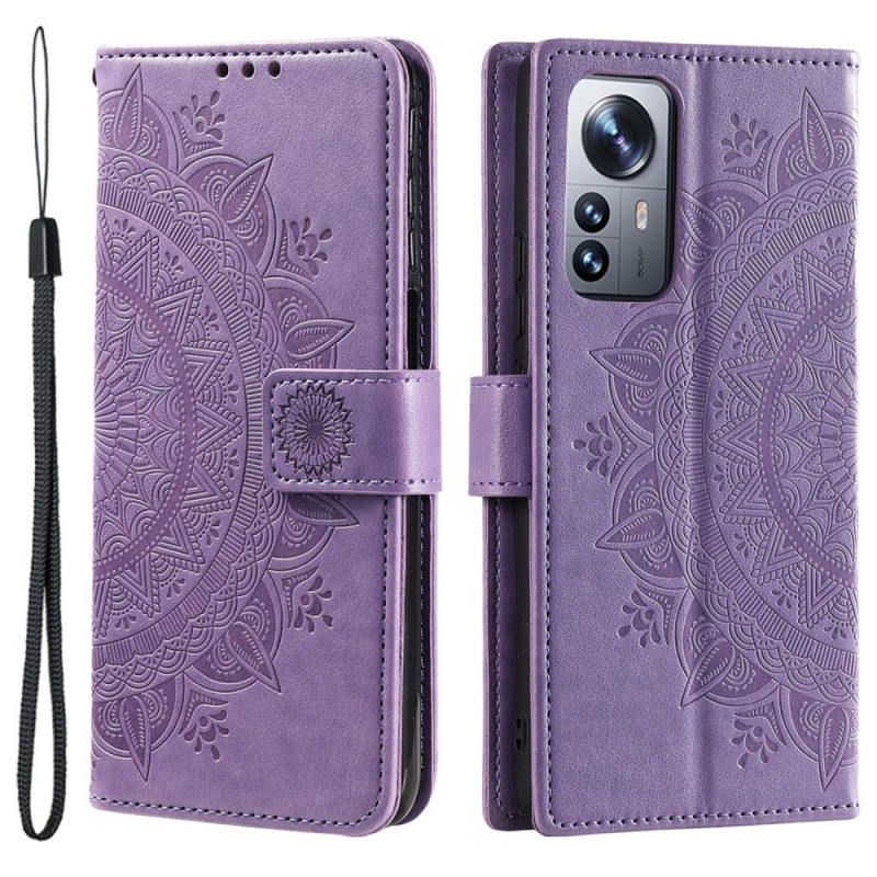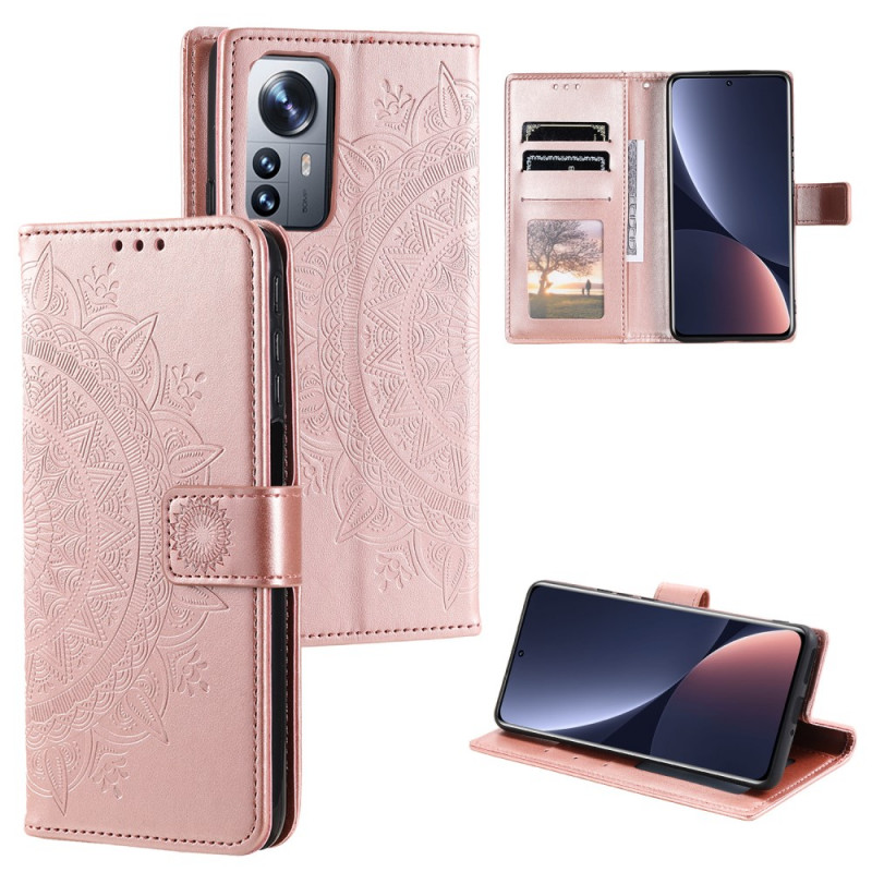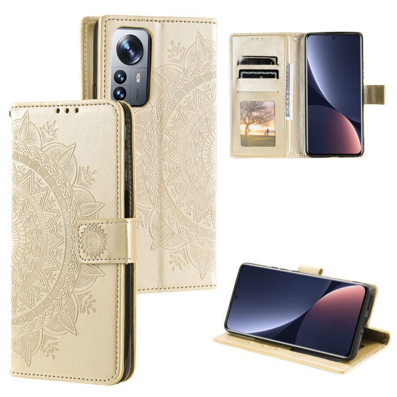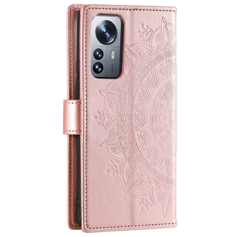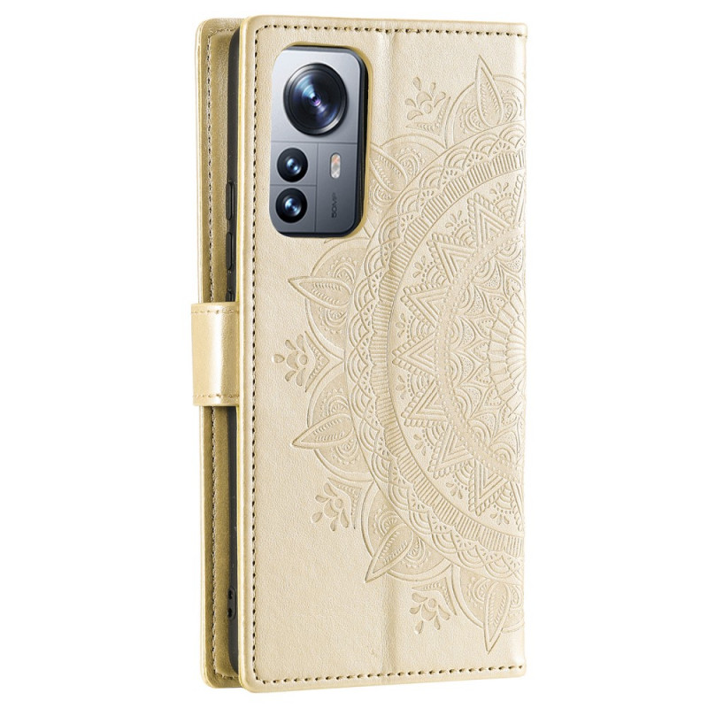 Een kunstlederen hoes versierd met een zonnemandala beschermt uw Xiaomi 12 Pro en doet tevens dienst als portemonnee.