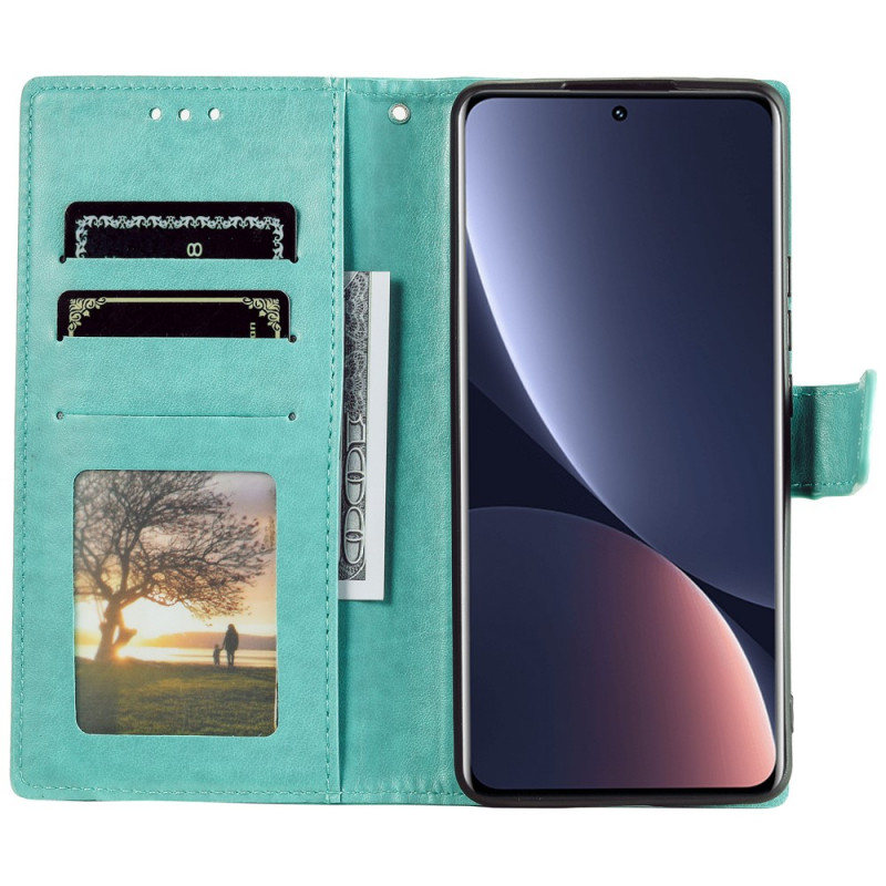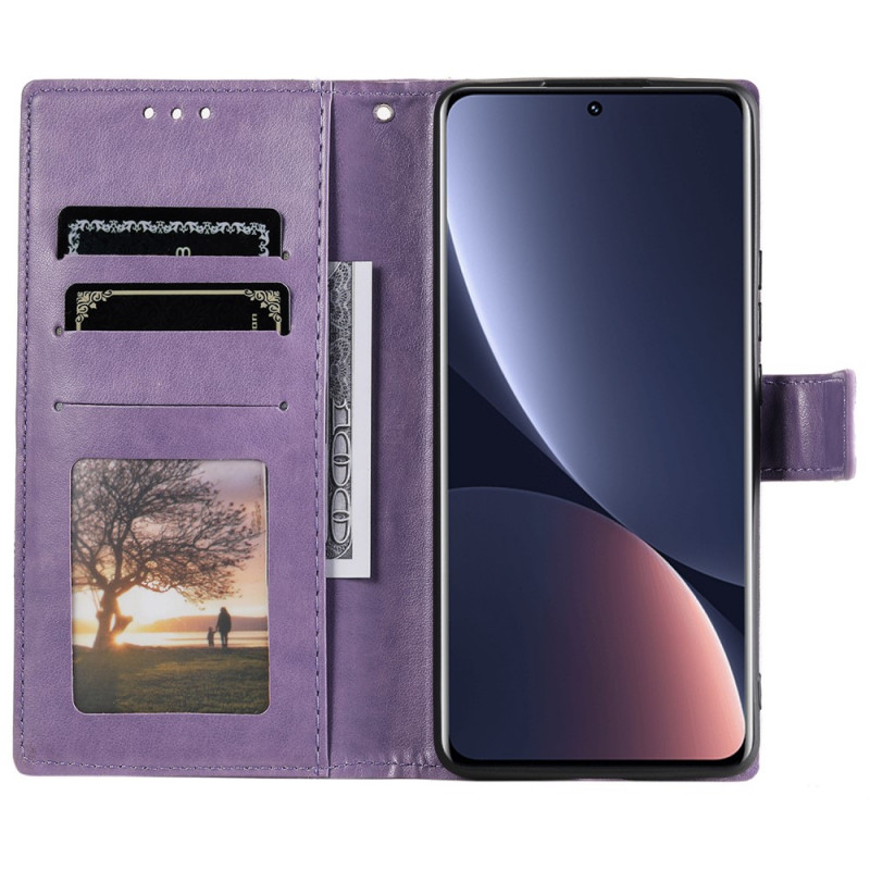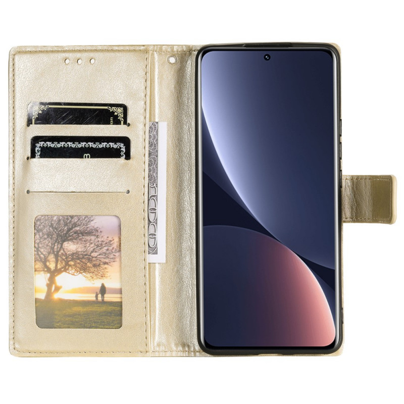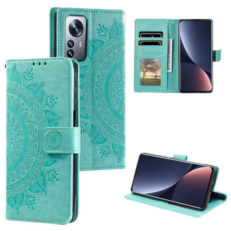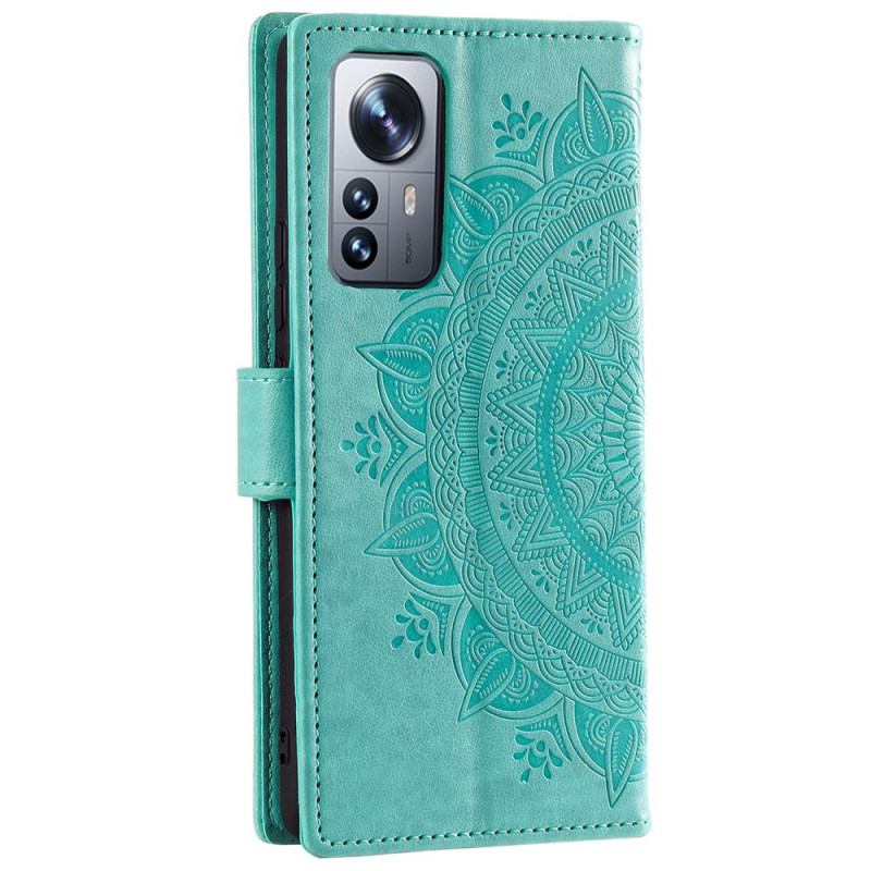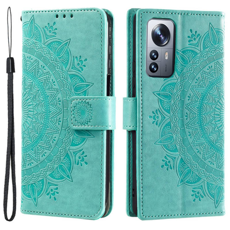 Een kunstlederen hoes versierd met een zonnemandala beschermt uw Xiaomi 12 Pro en doet tevens dienst als portemonnee.