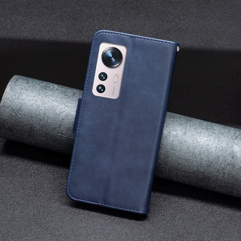 Ontdek deze kunstlederen hoes met schuine sluiting die je Xiaomi 12 / 12X / 12S veilig houdt en tegelijkertijd als portemonnee en standaard dient.