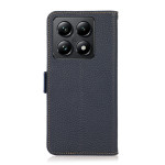 Echt rundleren hoesje voor Xiaomi 14T Pro met elegante lychee textuur.
