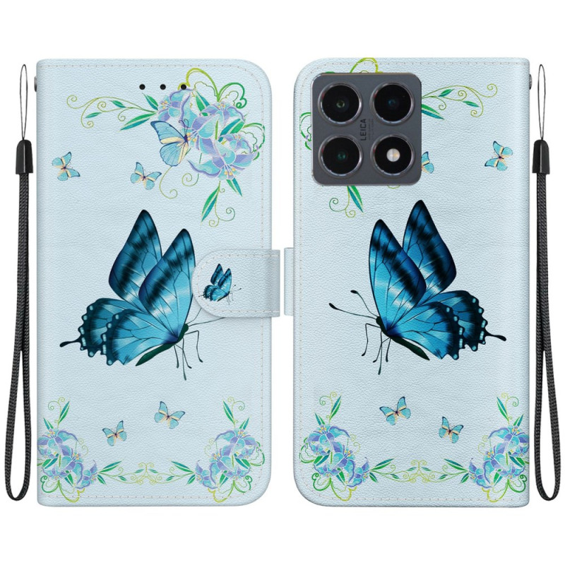 Ontdek onze luxe wallet case voor de Xiaomi 15T, die stijl en functionaliteit combineert. Versierd met een prachtig blauw vlindermotief en bloemen, biedt deze PU lederen case volledige bescherming met zijn flip design. Profiteer van de praktische standaardfunctie, kaartsleuven en polsband voor optimaal dagelijks comfort.
