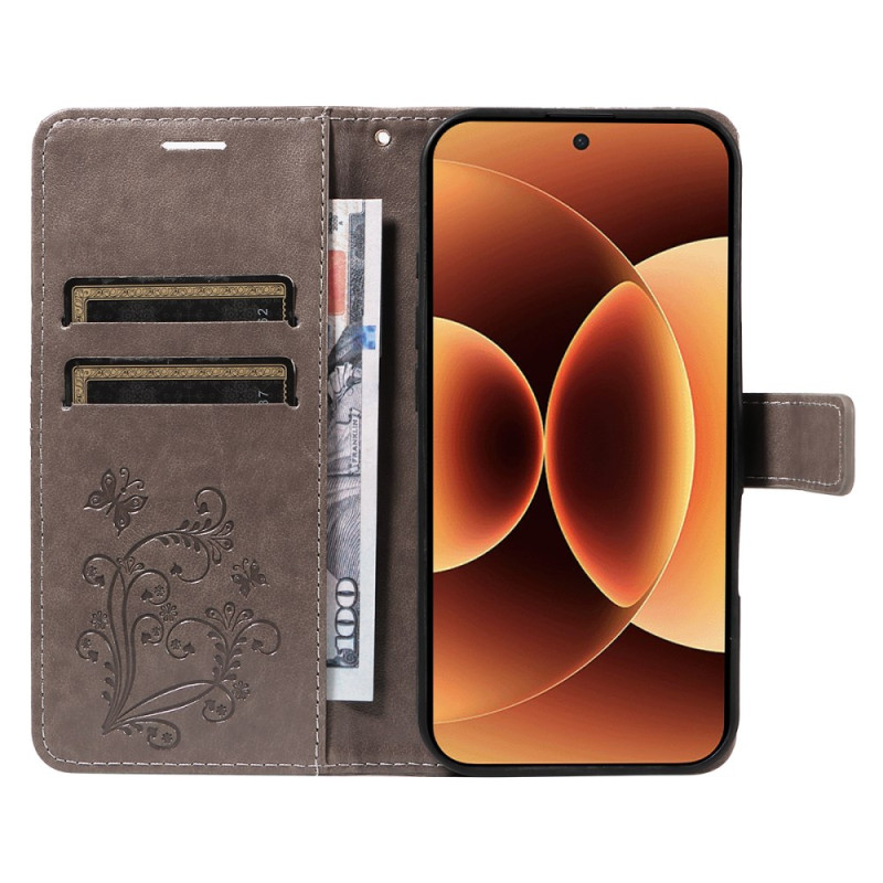 Deze stijlvolle hoes van hoogwaardig PU-leer biedt robuuste bescherming voor je Xiaomi 17 Pro Max. Met zijn bedrukte vlindermotief, twee kaartsleuven, notitievakje en standaardfunctie combineert hij praktisch met stijl. De meegeleverde handriem maakt hem nog draagbaarder.