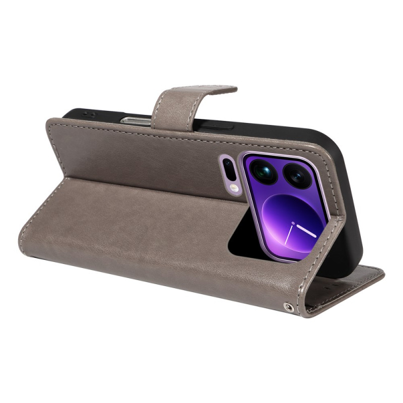 Ontdek onze elegante PU-leren portemonnee voor de Xiaomi 17 Pro Max. Hij combineert stijl en functionaliteit en biedt robuuste bescherming dankzij de matte TPU-binnenlaag. Geniet van twee kaartsleuven, een notitievak en een handige standaardfunctie voor handsfree kijken. De meegeleverde handriem maakt hem nog draagbaarder.