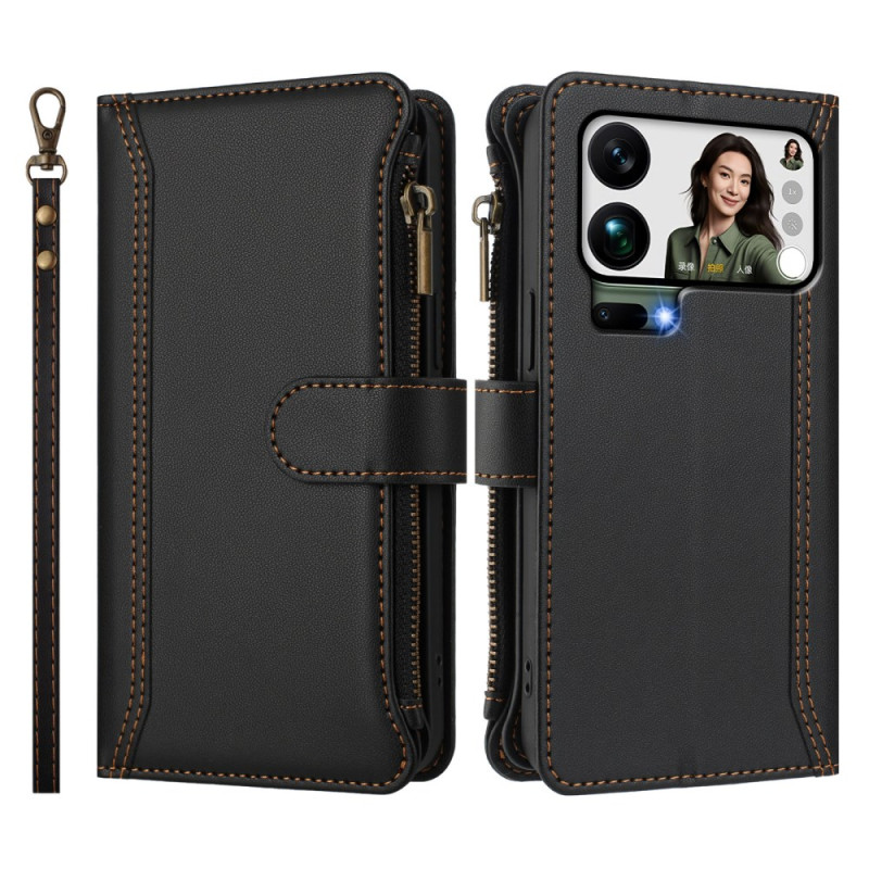 Stijlvolle en veelzijdige leren hoes voor de Xiaomi 17 Pro Max. Biedt volledige bescherming met 9 kaartsleuven, ritssluiting, geïntegreerde standaard en polsband. Gemaakt van hoogwaardig PU leer en duurzaam TPU, combineert deze case functionaliteit en stijl voor praktisch dagelijks gebruik.