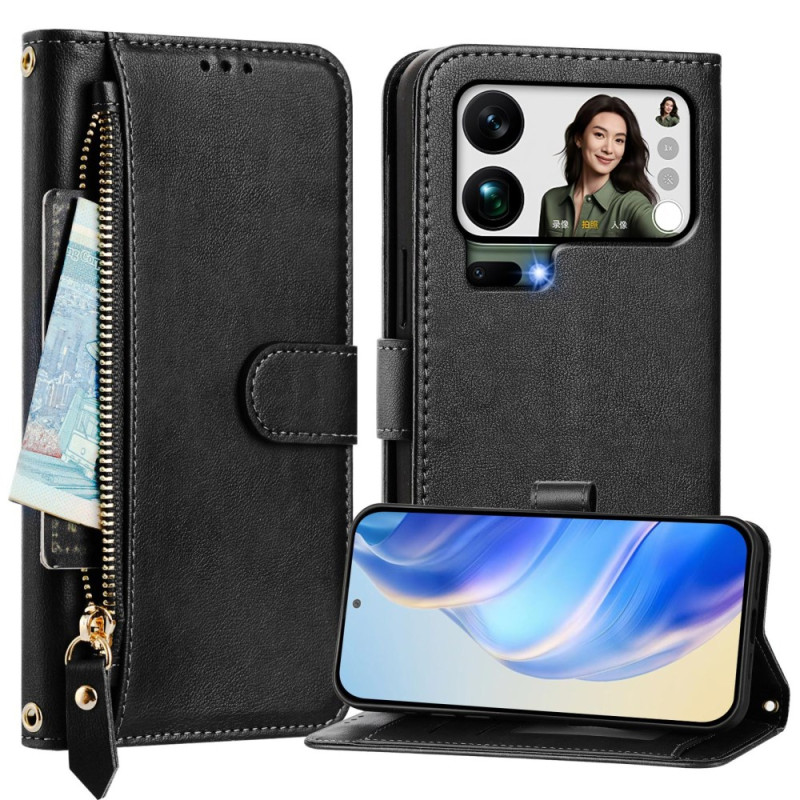 Multifunctionele portemonnee hoes voor de Xiaomi 17 Pro Max met ritsvak en kaartsleuven. Gemaakt van hoogwaardig PU-leer en biedt volledige bescherming en handsfree ondersteuning. Inclusief magnetische sluiting en handriem voor veilige draagbaarheid.
