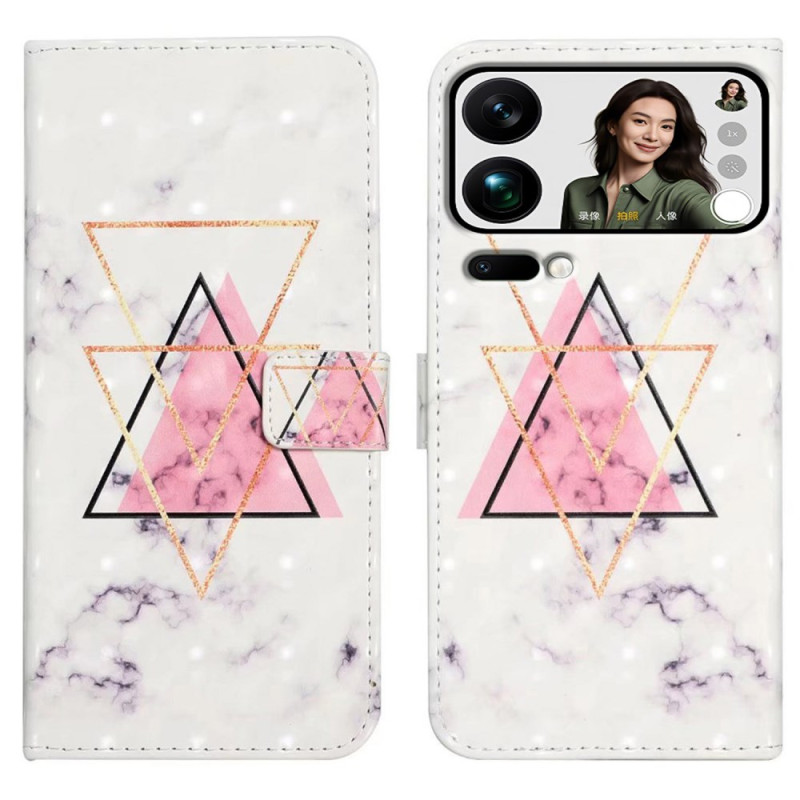 Protégez votre Xiaomi 17 Pro Max avec élégance grâce à cet étui à rabat au design marbre triangle en 3D. Doté de 3 emplacements pour cartes, d'une poche pour billets et d'une fonction support, cet étui polyvalent allie style et praticit...