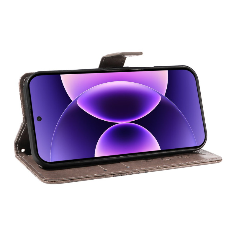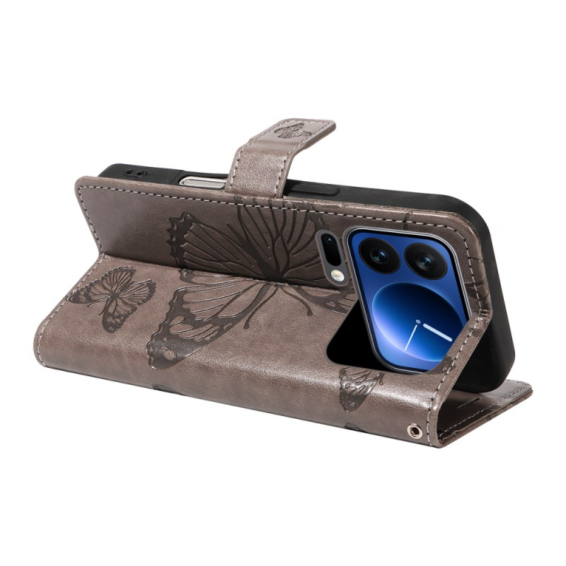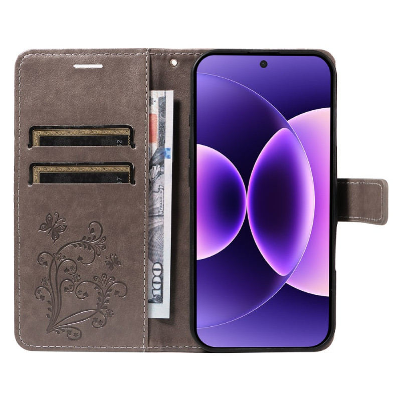 Stijlvolle PU lederen etui met vlindermotief, robuuste bescherming en praktische functies. Met kaartsleuven, notitievak, houderfunctie en polsband voor extra draagbaarheid.