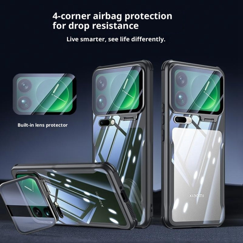 Bescherm je Xiaomi 17 Pro in stijl met deze transparante anti-vergelingshoes. Met glazen camerabescherming en een praktische geïntegreerde standaard biedt hij volledige 360° bescherming tegen stoten en vallen.