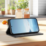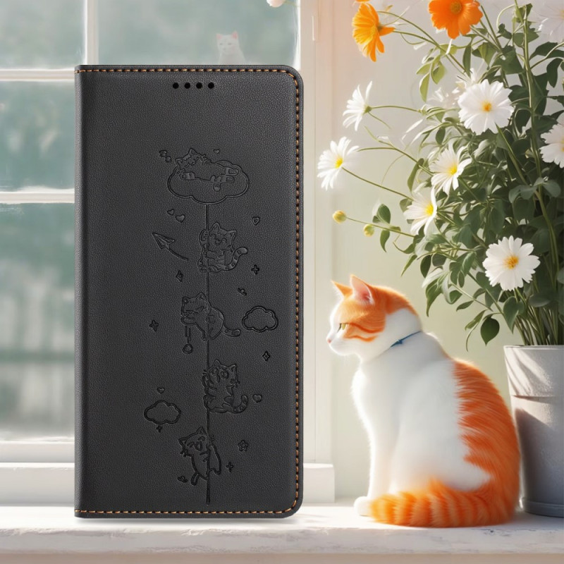 Étui portefeuille en cuir avec motif chat gravé pour Xiaomi 17 Ultra 5G. Protection antichoc complète, blocage RFID intégré, 2 fentes pour cartes et compartiment cash. Support mains libres et fermeture magnétique sécurisée pour un usage quotidien élégant.