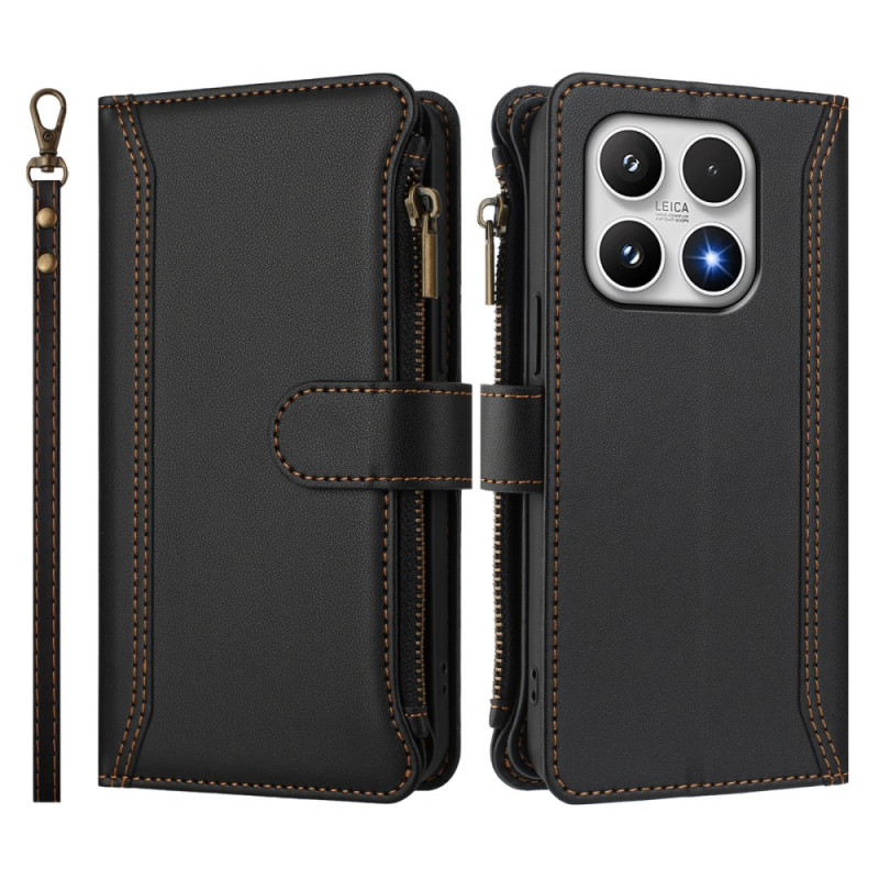 Veelzijdige leren hoes voor Xiaomi 17 met 9 kaartsleuven, ritssluiting, standaardfunctie en handriem. Biedt volledige bescherming tegen alledaagse stoten en vallen en biedt tegelijkertijd handige opbergruimte voor je pasjes, geld en andere kleine voorwerpen.