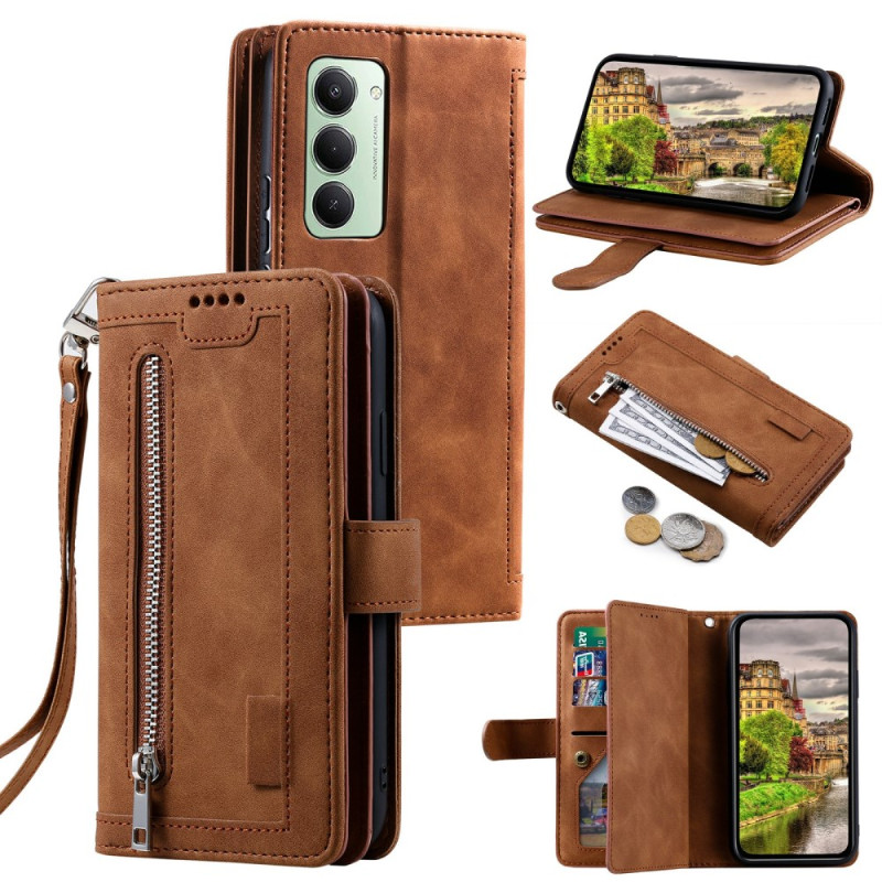 PU lederen portemonnee voor Xiaomi Redmi 15 met 9 kaartsleuven, ritssluiting en handriem. Geïntegreerde standaardfunctie voor handsfree kijken. Volledige bescherming met magnetische sluiting en TPU-interieur. Perfect voor het veilig opbergen van pasjes, munten en bankbiljetten.