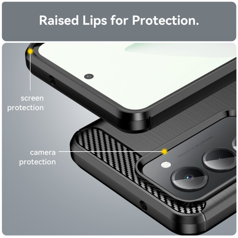 Ontdek onze hoogwaardige beschermhoes voor je Xiaomi Redmi 15 4G. Het is gemaakt van duurzaam, niet-giftig TPU en biedt optimale bescherming dankzij het koolstofvezelontwerp en het anti-vingerafdrukoppervlak. Precieze openingen zorgen voor volledige toegang tot de functies van je telefoon, terwijl de opstaande randen het scherm en de camera beschermen.