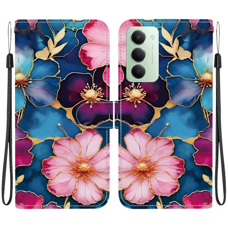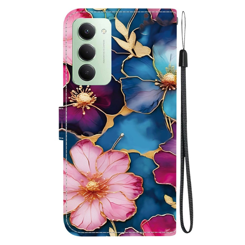 Ontdek onze elegante wallet case voor de Xiaomi Redmi 15 4G. Hij is gemaakt van hoogwaardig PU-leer en TPU en heeft een uniek ontwerp met een blauw en goud bloemenpatroon. Geniet van volledige bescherming, een praktische opvouwbare houder en opbergmogelijkheden voor je pasjes en geld.