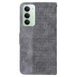 Elegante PU lederen portemonnee met geometrisch patroon voor Xiaomi Redmi 15 4G. Biedt robuuste bescherming, kaartsleuven, notitievak en standaardfunctie. Inclusief polsbandje voor extra veiligheid en draagbaarheid.