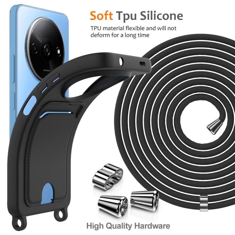 Bescherm je smartphone in stijl met dit ultrazachte hoesje van vloeibare siliconen. Met een geïntegreerde kaarthouder en een verstelbaar koord van 160 cm biedt hij optimale bescherming tegen krassen en stoten.