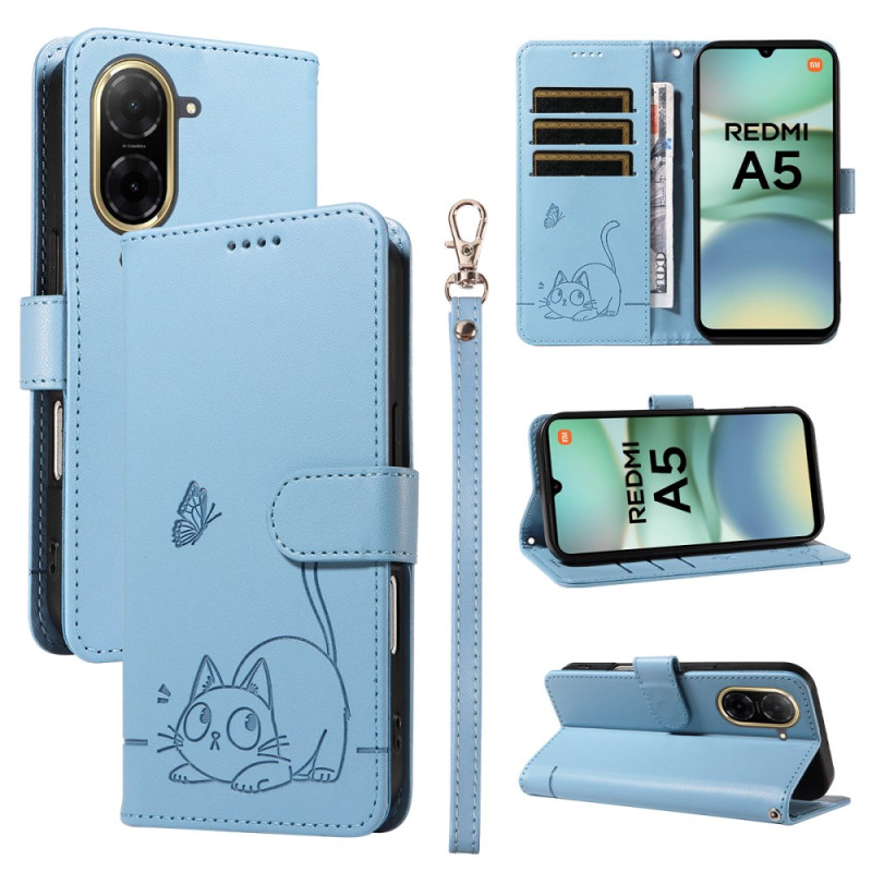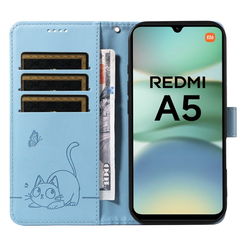 Multifunctionele portemonnee hoes voor Xiaomi Redmi A5 met gelukskat motief. Voorzien van drie kaartsleuven, een geldvakje en een veilige magneetsluiting.