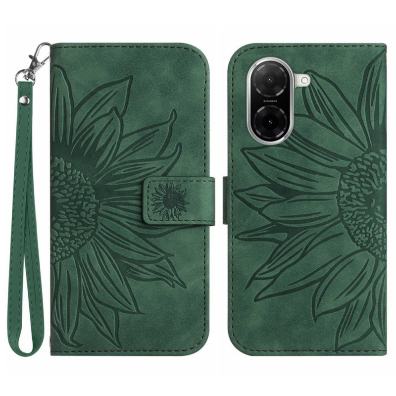 Het bedrukte zonnebloemmotief en de handriem voegen een vleugje elegantie en praktische...