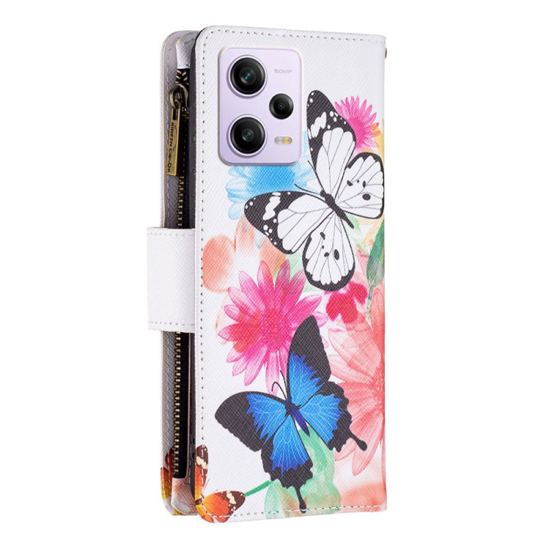De hoes met vlinderportefeuille beveiligt en biedt geoptimaliseerde opties voor de Xiaomi Redmi Note 12 Pro 5G/Poco X5 Pro 5G.