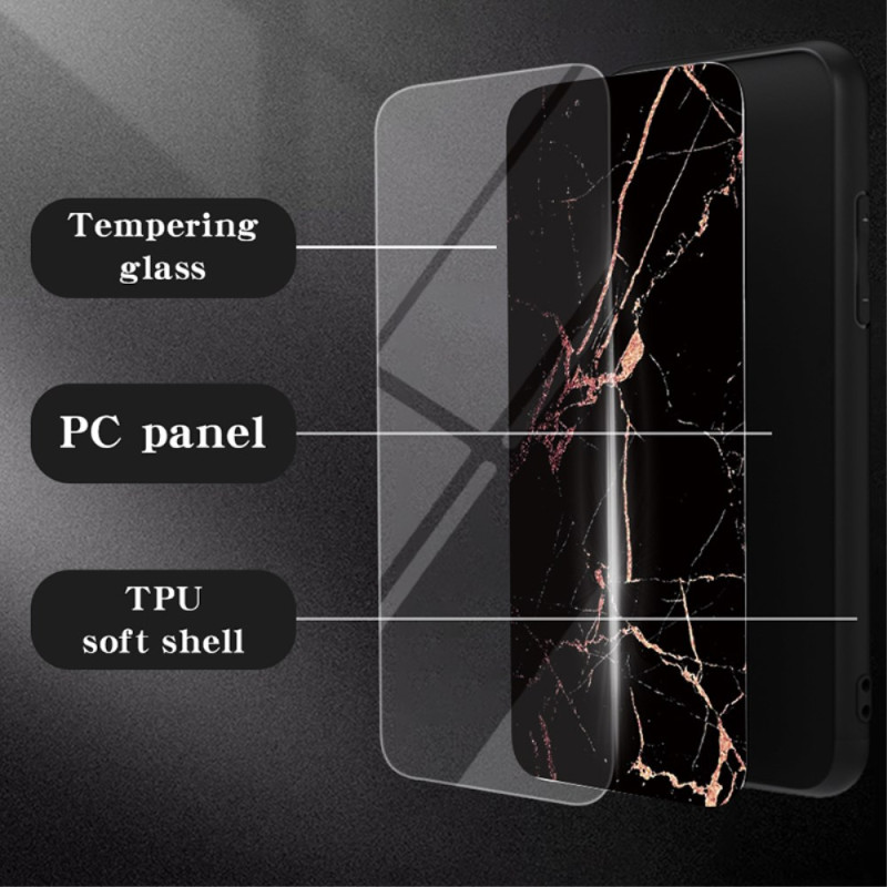 Het biedt maximale bescherming tegen krassen en slijtage, terwijl het een vleugje stijl toevoegt met zijn gemarmerde patroon.