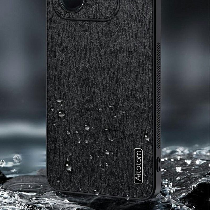 met houtstructuur voor de Xiaomi Redmi Note 14 5G. De combinatie van PC en TPU biedt optimale bescherming tegen schokken en krassen.