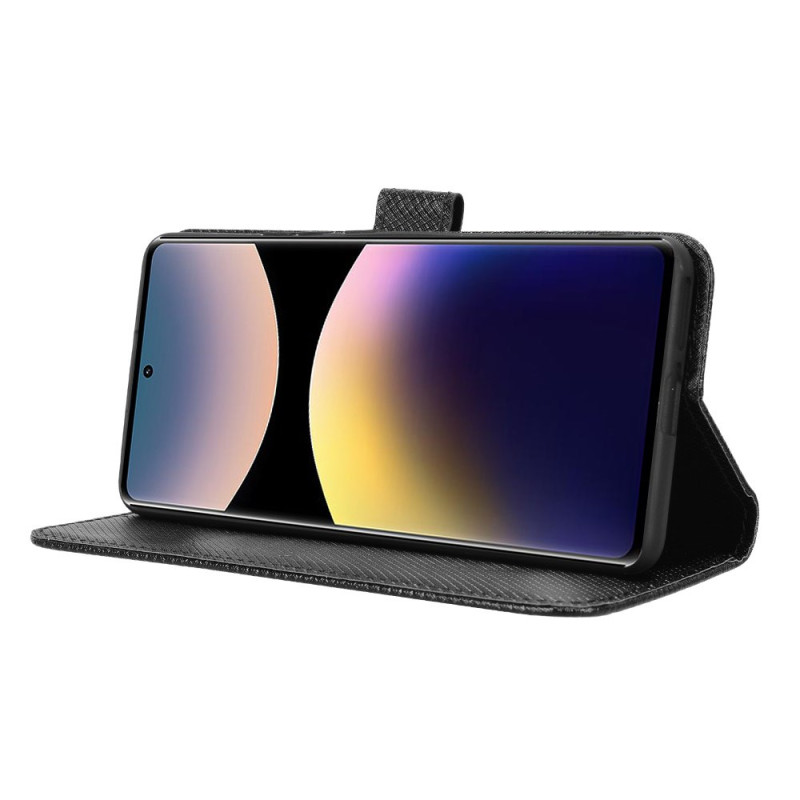 Ontdek onze elegante PU-leren portemonneehoes voor de Xiaomi Redmi Note 14 Pro 4G. Met zijn unieke diamantstructuur, praktische opbergvakken en ondersteuningsfunctie combineert hij stijl en functionaliteit.