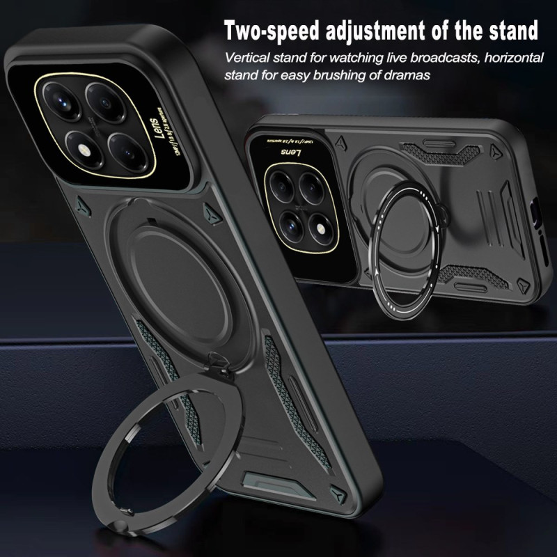 Découvrez notre coque innovante pour Xiaomi Redmi Note 14 Pro 4G. Dotée d'un support rotatif magnétique intégré, elle offre une protection double couche en PC et TPU.