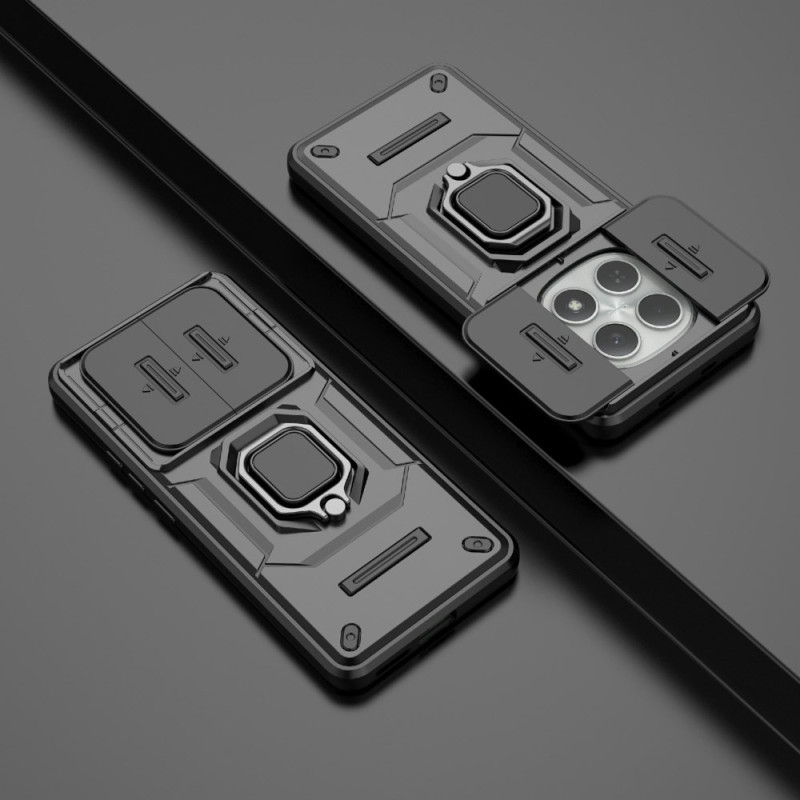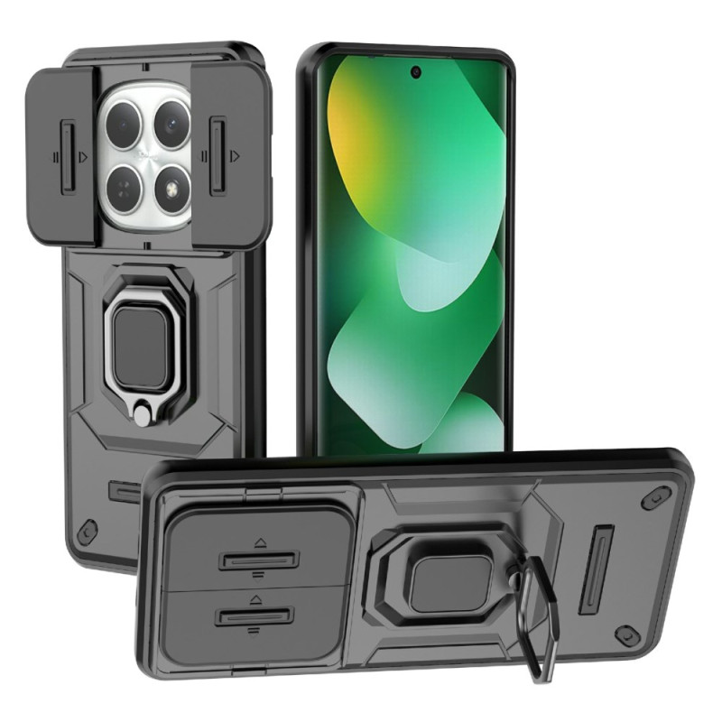 Bescherm je Xiaomi Redmi Note 15 4G met deze robuuste case van PC en TPU. Hij is voorzien van een verschuifbare lenskap, een geïntegreerde roterende kickstand en opstaande randen voor optimale bescherming tegen stoten en krassen.