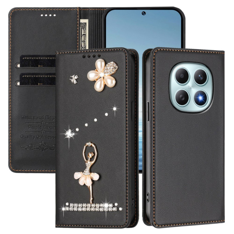 Bescherm je smartphone in stijl met deze eersteklas PU-leren portemonneehoes. Met RFID-bescherming, een balletdanseres-ontwerp versierd met strass-steentjes, 2 kaartsleuven en een verstelbare standaardfunctie voor een handsfree ervaring.