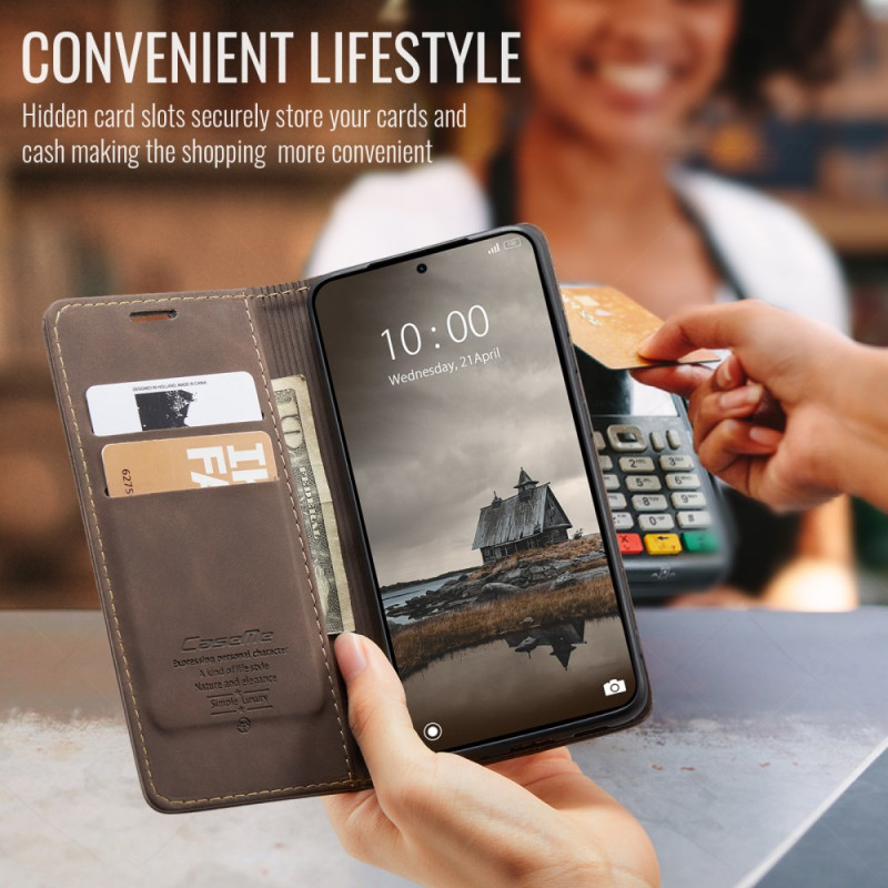 Ontdek de CASEME 013 wallet case voor Xiaomi Redmi Note 15 Pro 4G. Elegant retro design met vakjes voor pasjes en geld, verstelbare kijkstandaard en veilige magnetische sluiting. Volledige bescherming voor je telefoon.