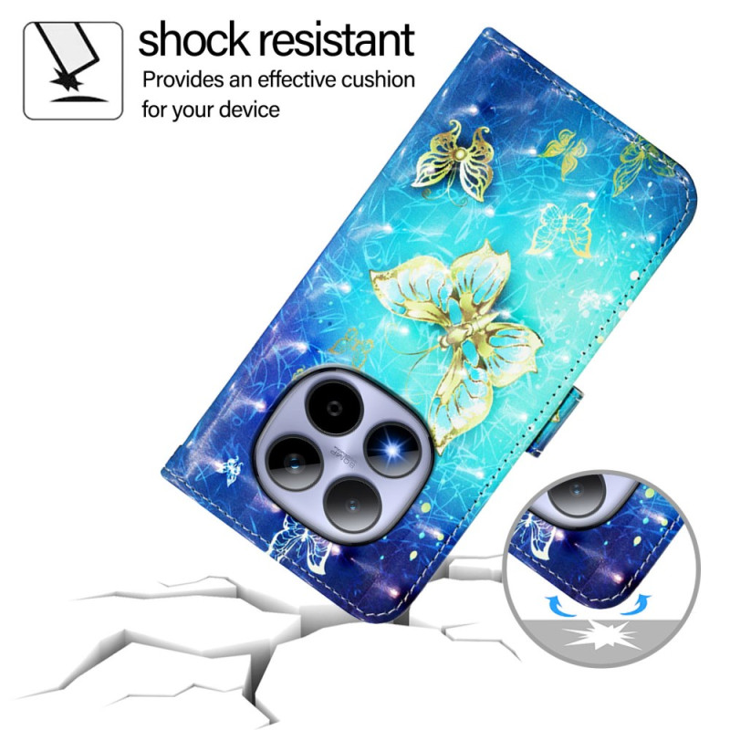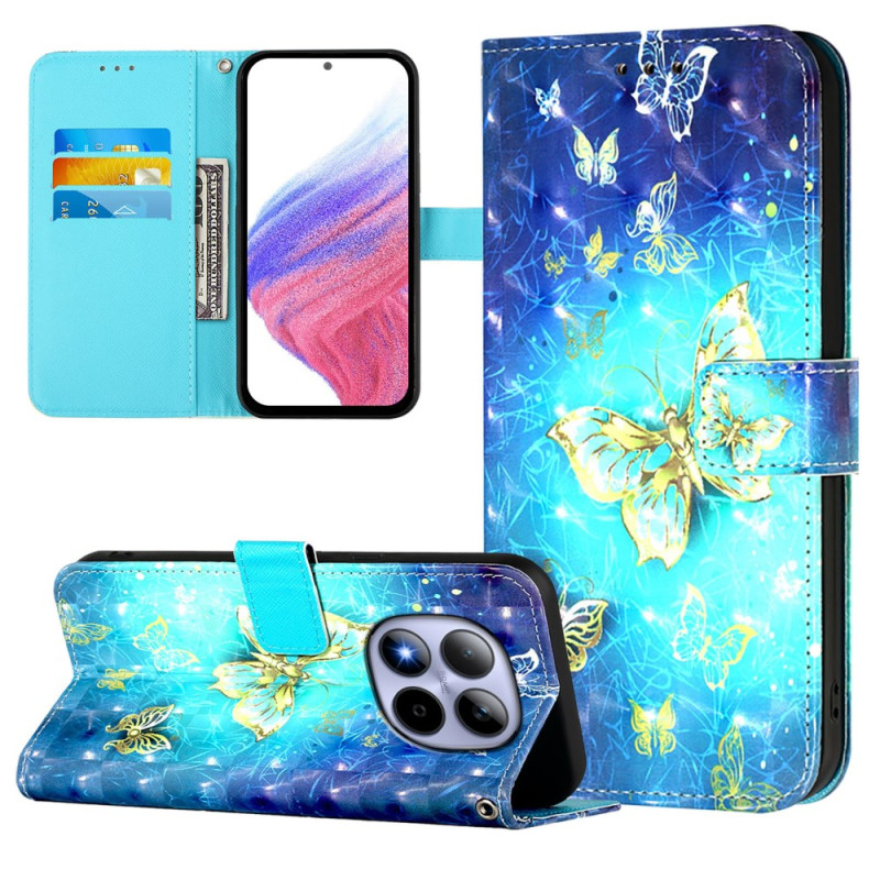Bescherm je Xiaomi Redmi Note 15 Pro 5G in stijl met deze portemonneehoes met goudkleurig vlindermotief. Multifunctioneel ontwerp met 3 kaartsleuven, 1 geldvakje en verstelbare standaard voor een handsfree ervaring.