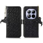 Elegant echt lederen hoesje met struisvogeltextuur voor de Xiaomi Redmi Note 15 Pro 5G. Met RFID-blokkeringstechnologie biedt deze portemonneehoes 2 kaartsleuven, 1 fotovak en 1 geldvak.