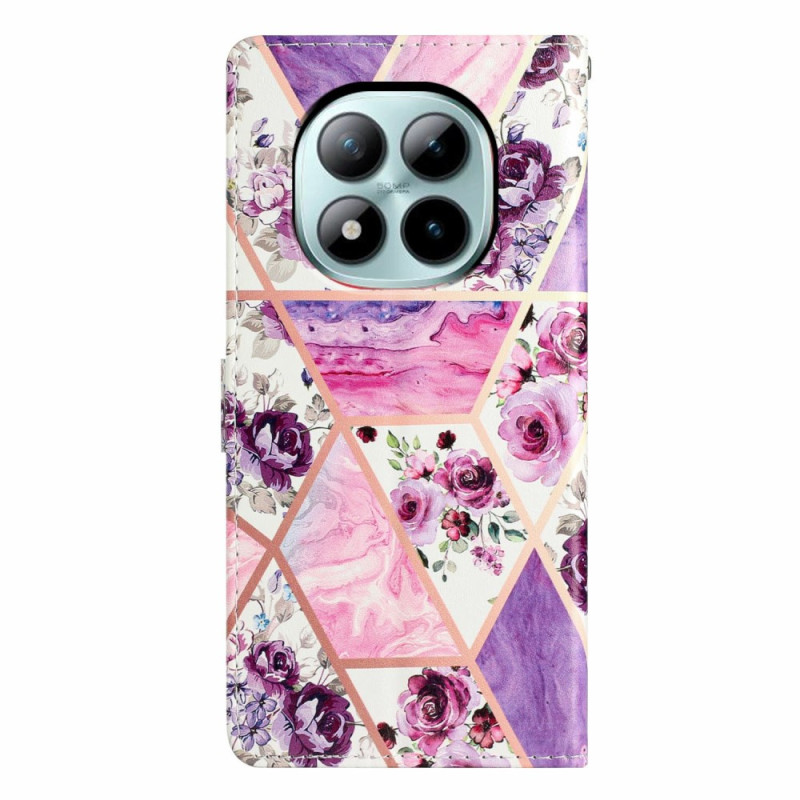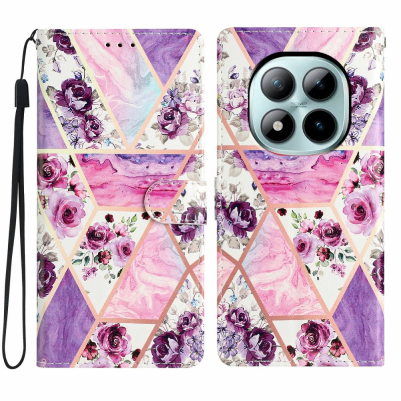 Stijlvolle kunstlederen portemonnee hoes met paars bloemmotief voor je Xiaomi Redmi Note 15 Pro Plus 5G. Voorzien van 3 kaartsleuven, geldvak, handsfree houder en veilige magneetsluiting. Inclusief een praktische handriem om gemakkelijk mee te nemen...