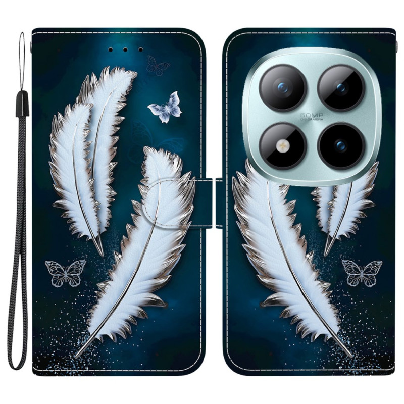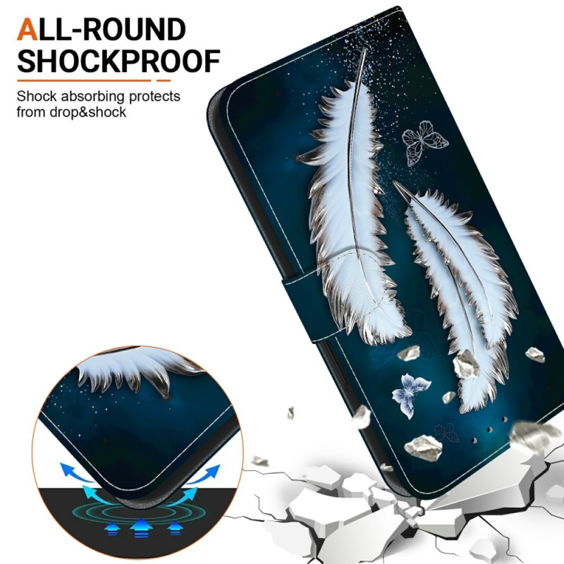 Bescherm je Xiaomi Redmi Note 15 Pro Plus 5G in stijl met deze portemonneehoes met klep. Verfijnd ontwerp met wit vlinderverenmotief, geïntegreerde standaardfunctie, kaartvakjes en veilige magneetsluiting.