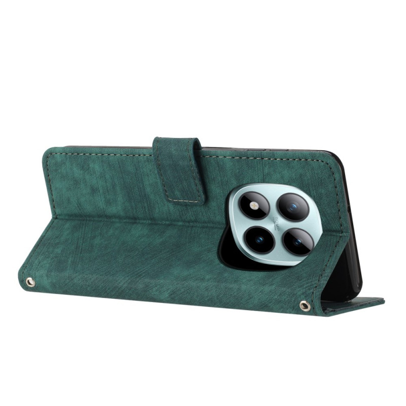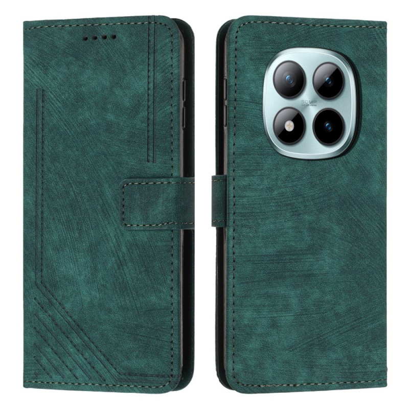 Stijlvolle PU lederen hoes met gedrukte lijnen voor Xiaomi Redmi Note 15 Pro Plus 5G. Voorzien van 3 kaartsleuven, ticketvakje, praktische standaardfunctie en veilige magneetsluiting. Geleverd met afneembare handriem.