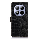 Elegante portemonnee hoes van echt leer met krokodillen textuur voor Xiaomi Redmi Note 15 Pro Plus 5G. Ingebouwde RFID-bescherming, 3 kaartsleuven, 1 notitievakje en verstelbare kijkstandaard. Beveiligde magnetische sluiting...