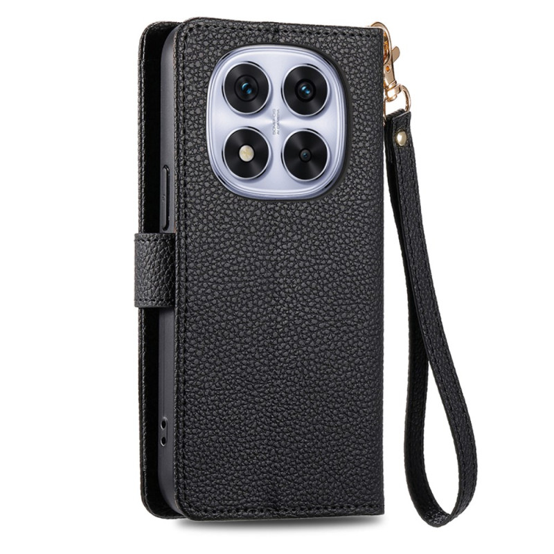 Stijlvolle portemonnee hoes voor Xiaomi Redmi Note 15 Pro Plus 5G met geavanceerde RFID-blokkeringstechnologie. Voorzien van een ritsvak, kaart- en geldcompartimenten, handsfree houder en praktische handriem. Volledige bescherming tegen krassen en vallen.