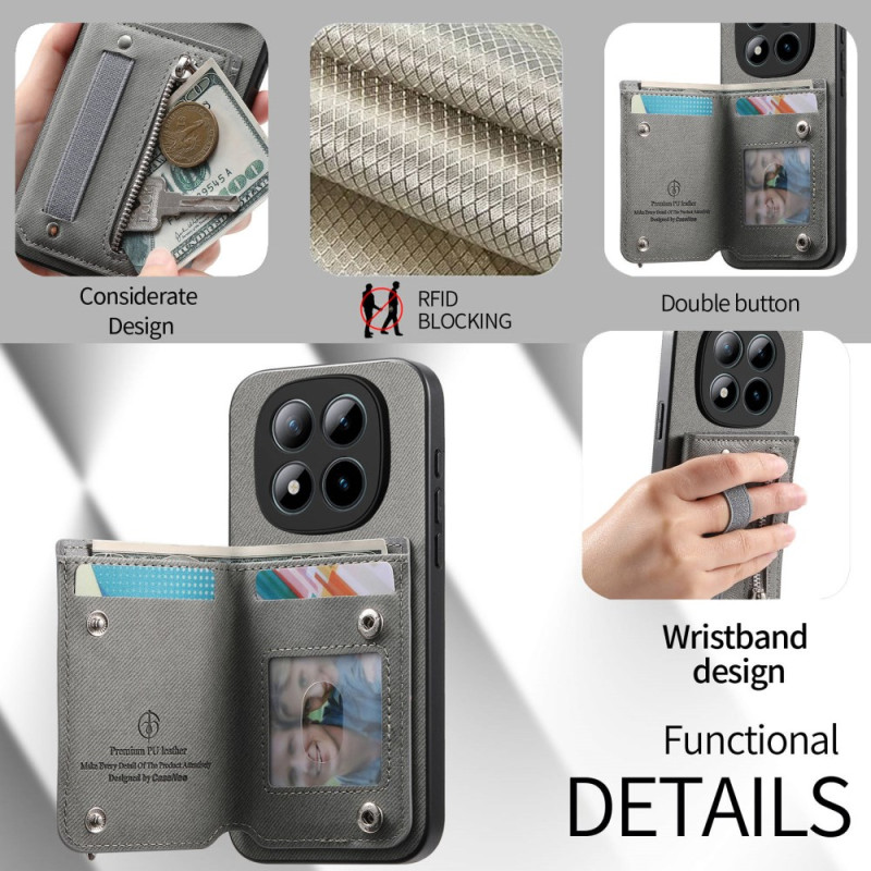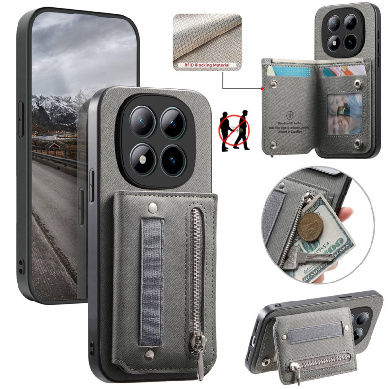 Protégez votre Xiaomi Redmi Note 15 Pro Plus 5G / Poco M8 Pro 5G avec style grâce à cette coque multifonction dotée d'une technologie anti-RFID. Elle intègre un porte-cartes sécurisé, une dragonne élastique et une pochette zippée pour vos petits objets. Son design texturé effet jean allie élégance et praticité au quotidien.
