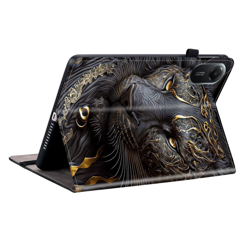 Bescherm je Xiaomi Redmi Pad 2 in stijl met dit hoesje met leeuwenmotief in zwart en goud.