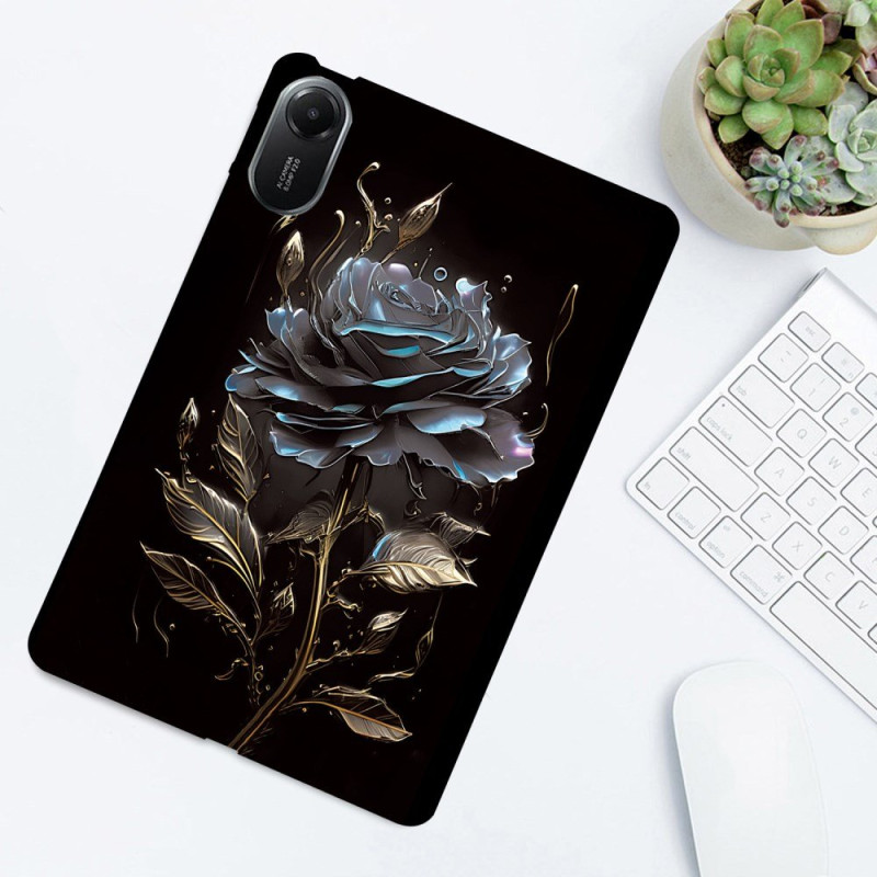 Bescherm je Xiaomi Redmi Pad 2 in stijl met deze slanke hoes met een zwarte roos en vlindermotief.