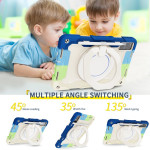 Hij is voorzien van een roterend handvat, geïntegreerde standaard, penhouder en schouderriem voor optimaal comfort.